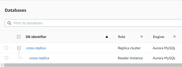 - 아래 화면과 같이 Cross Region Replica 가 생성된 region 을 직접 선택해야 확인 할 수 있다.