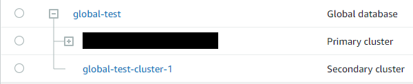 - 그러나 Global database 는 아래 화면과 같이 Primary, Secondary Cluster 라 하여 서로 독립된 Cluster 이 하나로 묶인 구조임을 확인 할 수 있다.