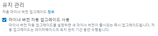이를 설정하면 특정 인스턴스 및 cluster 에 대한 권장 버전이 나오는 데로 각 사용자가 설정한 유지 관리 기간내에 자동으로 업그레이드가 수행 된다.