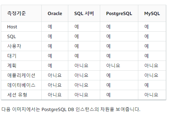 이 페이지에서는 RDS, Aurora Cluster 에서 제공하는 성능 모니터링 지표인 Performance Insight 에서