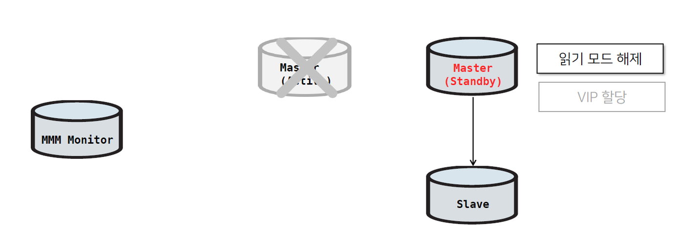 - 그 후 Standby 서버가 Active 서버로 승격되도록 읽기모드를 해제하고 VIP를 다시 할당 받음 으로써 Failover 가 끝난다.