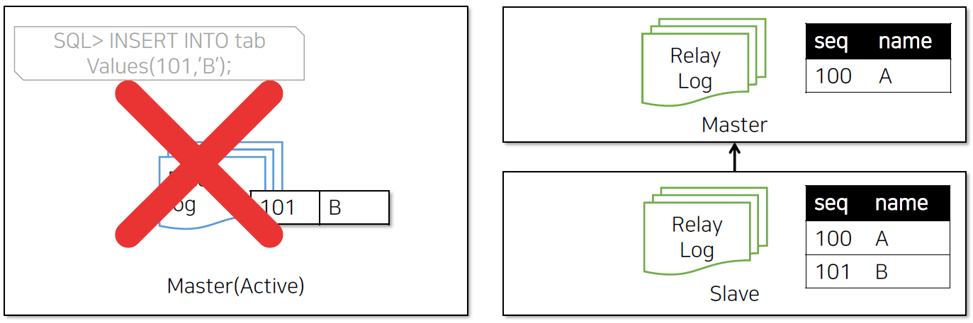 하지만, 실제 사용 master active 서버와의 데이터 동기화를 위하여 읽기모드로 사용한다.