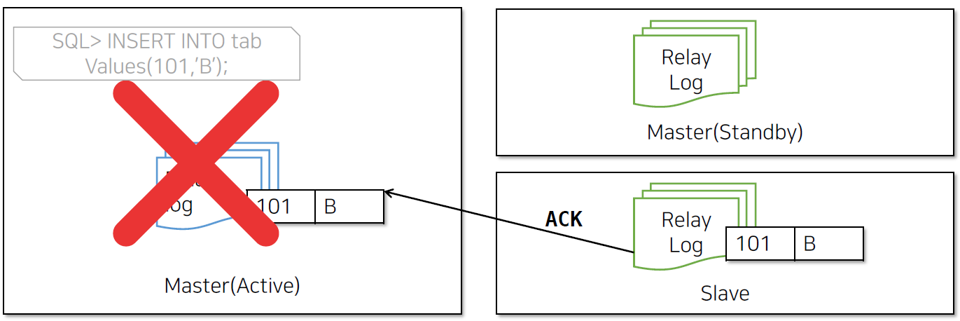 - 이에 대한 대처로 Failover 가 된 서버가 Active 로 승격되고 Slave 서버는 변경된 데이터를 그대로 보존한채로 승격된 서버와 복제 연결. MMM 구조는 이와 같이 다수 Slave 서버와 Master 서버간의 데이터 변경 내역 (Version) 이 상이하여 Data Crash 가 발생 할 수 있는 단점이 있음.