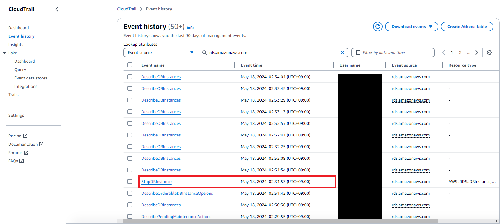 필자는 RDS 서비스를 기준으로 CloudTrail 의 사용 예시를 아래와 같이 기재하겠다.