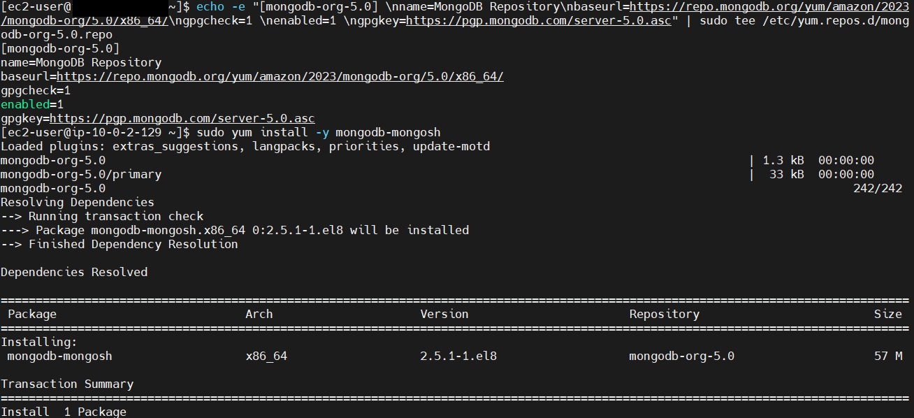 - 이에 따라 먼저 repository 설정 및 mongsh 를 yum 으로 설치한다.