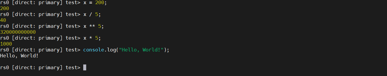 - 이제 여기서 사용자는 명령어를 입력 해 볼 수 있는데 Mongo Shell 은 JavaScript 해석기이기도 해서 사용자가 JavaScript 로 간단한 명령어 또는 Factorial 등의 다중 구문을 작성 해 볼 수 있다. 필자는 JavaScript 에 익숙치 않으므로 매우 간단한 예시만 아래와 같이 남긴다.