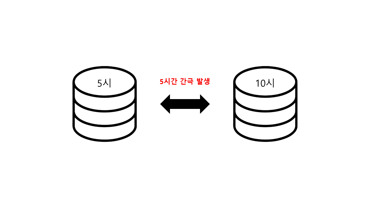 5시간의 데이터 간격이 발생했고, 이 상황에서 이관된 서버에서 오후 4시에 DB 를 올렸을 때, 오전 시간대에 서비스를 사용한 고객들에게 VOC 를 받아서 AO측에서 이에 대한 해결 방법 지원을 요청 했었다.