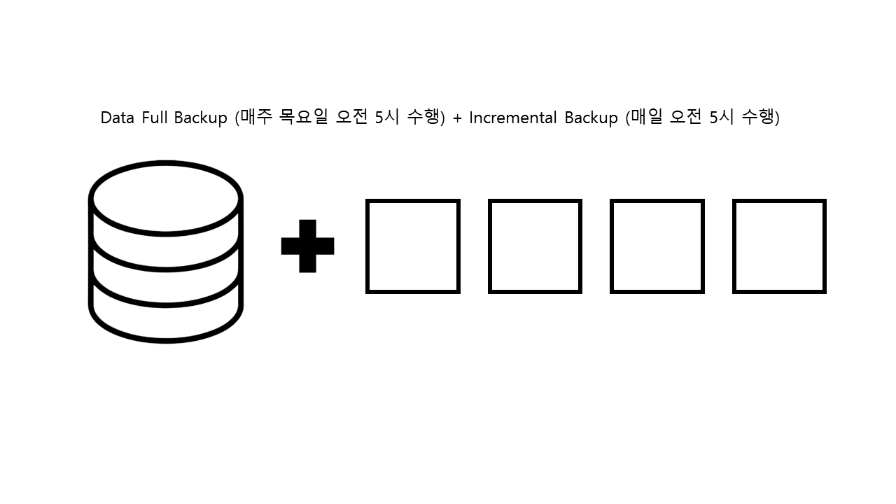 우선 사내에서 적용되는 mysql 서비스 백업 정책은 아래와 같이 매주 목요일 오전 5시에 Full Backup 을, 매일 오전 5시에는 Incremental Backup 을 수행 한다.