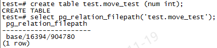 select pg_relation_filepath('test.move_test'); #괄호 안에 있는 테이블은 자신이 만든 테이블명으로 조회하면 된다.