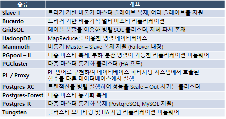 - Trigger-Based Master-Standby Replication : 트리거 기반 Master – Standby 리플리케이션