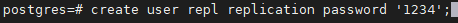 - 그 후, Master DB 내에 replication 을 위해서 사용할 계정을 생성한다. (계정 및 패스워드는 임의로 지정한다.)