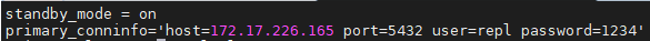 해당 옵션을 on 으로 하면 해당 옵션이 적용되는 서버는 slave 서버가 되며, 이를 응용한 H.A 구성시에도 standby 서버 역할을 하게 된다. - primary_conninfo