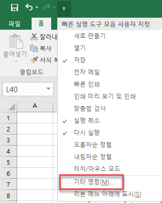 여기서 기타 명령을 클릭한다.