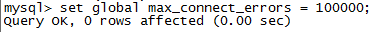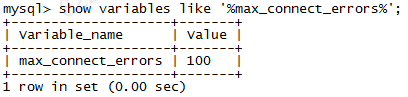 그리고, 현재 DB 서버에서 허용하는 error count 수치를 확인 한다.