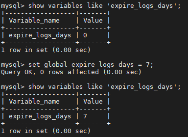 set {global} expire_logs_days = #원하는 일자