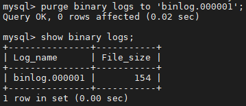 PURGE BINARY LOGS BEFORE '2019-04-02 22:46:26'; #시간은 해당 양식을 준수, 시간 제외 및 일자만 작성 가능