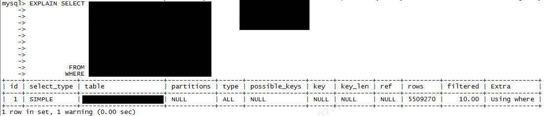 이 때, 옵티마이저가 조회할 대상 파티션 테이블을 보여준다. 단, 위와 같이 파티션 구성이 안된 테이블은 NULL 로 나온다.