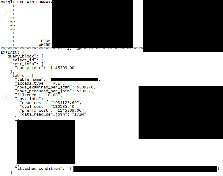 이를 바탕으로 Analyze 등의 옵션 명령어들을 사용 할 수 있다. (테이블, 컬럼정보는 보안으로 인하여 masking 함)