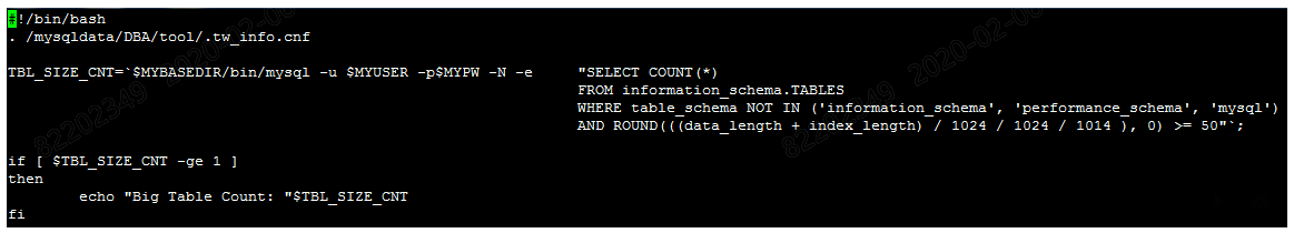 Big Table 개수 관제 스크립트 (회사 보안사유로 인하여 테이블명은 masking 함)